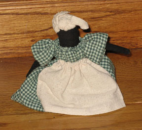 As was mentioned in the discussion of the rolled fabric doll kits, the Mordecai House in Raleigh, North Carolina, had a display case containing a collection of rolled fabric dolls from the 1850's. Among the dolls in the display case were four black dolls. Be sure and read a bit about the history of these dolls on the previous page about the Rolled Fabric Doll Kit. One element that we did not mention in that description was the beginning of the instructions for making the black doll. The instructions began with an explanation that the black doll was made "just like the doll on the previous page." Probably without intending it, they made a very strong statement for equality! And, like our other dolls, be sure and name your doll. We have not pre-named them because you may have some special name to give them. $16.50 each