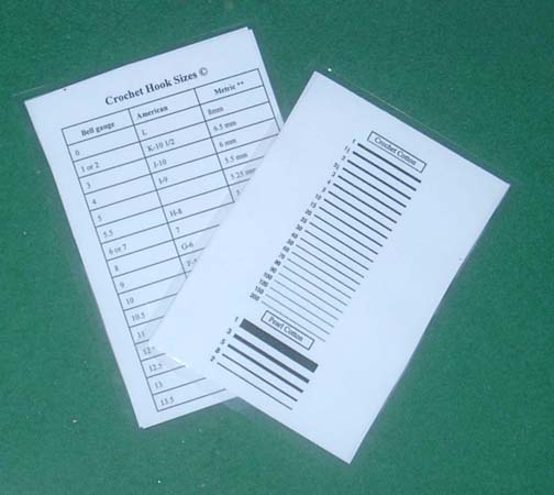 For those not familiar with the principal behind these cards, when you read a period crochet pattern there is often confusion as to what size thread and hook to use and some patterns don’t even include either the thread or hook sizes (you're just supposed to know). Even when they do include such information, it is in 19th century terms and not modern crochet terms. These cards, like the knitting reference cards, have been designed to make things easier for those who are translating period patterns for modern use. The first card has images of actual sized crochet cotton and pearl cotton threads which were taken from Encyclopedia of Needlework by Theresa de Dillmont. On the reverse side is a general listing of crochet items with the suggested thread and hook size. The latter was taken from Beeton’s Book of Needlework. One can easily take modern crochet threads and compare them to the period image in order to obtain the correct sized thread. The second card is a comparison of bell gauge sized crochet hooks with the American and Metric equivalent sizes. Prices: $3.25 per card or $5.75 for both. When ordering, be sure to specify whether you want the Crochet Thread Card, the Crochet Hook Sizes Card, or both. Available wholesale. Special shipping rates for the crochet cards. If you are ordering only the crochet cards (or knitting cards in the same order as the crochet cards), the shipping rates are $ .75 for a single card or a set (two cards, one of each). If you are ordering multiple cards or sets, please include $ .75 for every two cards. The cards will be sent via First Class mail, rather than Priority Mail. This cost includes both shipping and handling.