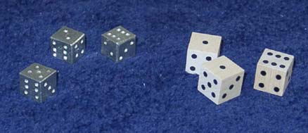 Two sets of dice are shown in the picture: a pewter set and a wooden set. Soldiers could have made a set of dice similar to the pewter ones by hammering their bullets into cube shapes. However, by making these from pewter you avoid the potential problems that come from handling lead.The wooden set could have easily been homemade and are very light in weight. It is important to remember, too, that some people in the 19th century