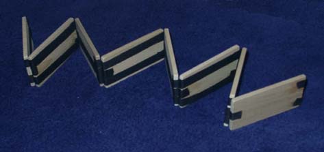 This was reputed to be a "Sabbath toy" due to its biblical reference. According to some sources, the age of the Jacob's ladder dates from at least the 1830's. The easiest action to do with the Jacob's ladder is to hold the string of blocks vertically and, by turning the top block down, start a cascade of successive blocks flipping over. With a bit of manuevering, it is possible to get two and sometimes a brief moment of three cascades in motion at the same time. After mastering the cascading blocks, users can then start to make pictures. By laying