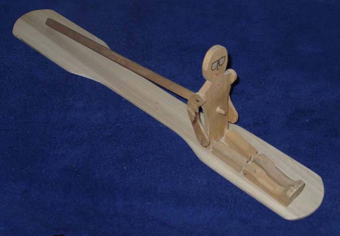 not sitting like our picture shows. You then stroke down the edge of the paddle so it just smacks the bottom of the dancer's feet. This will cause him to do a "dance" on the paddle. The cost of a Limberjack is $17.95