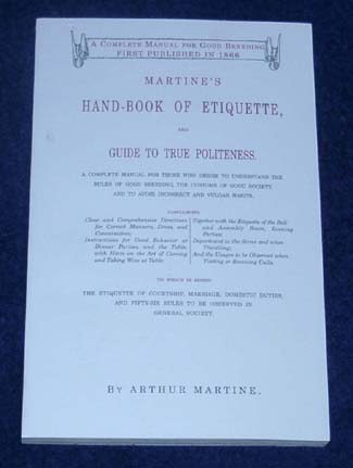 Etiquette books were quite popular during the nineteenth century as the general public tried to improve their appearance not only in their material presence but also in how they acted. This book contains, as might be expected, guides for individual